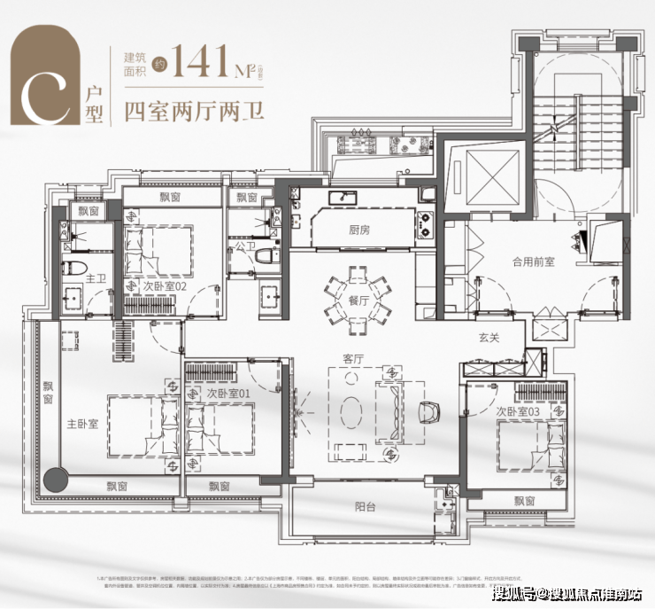 全屋足足四个飘窗设计,带来更多的采光和更好的通风,让你无需羡慕老洋房的采光。