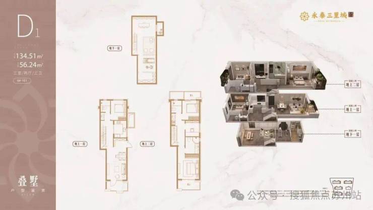 ③洋房一层复式叠加,地上134㎡-251㎡地下赠送56-143㎡
