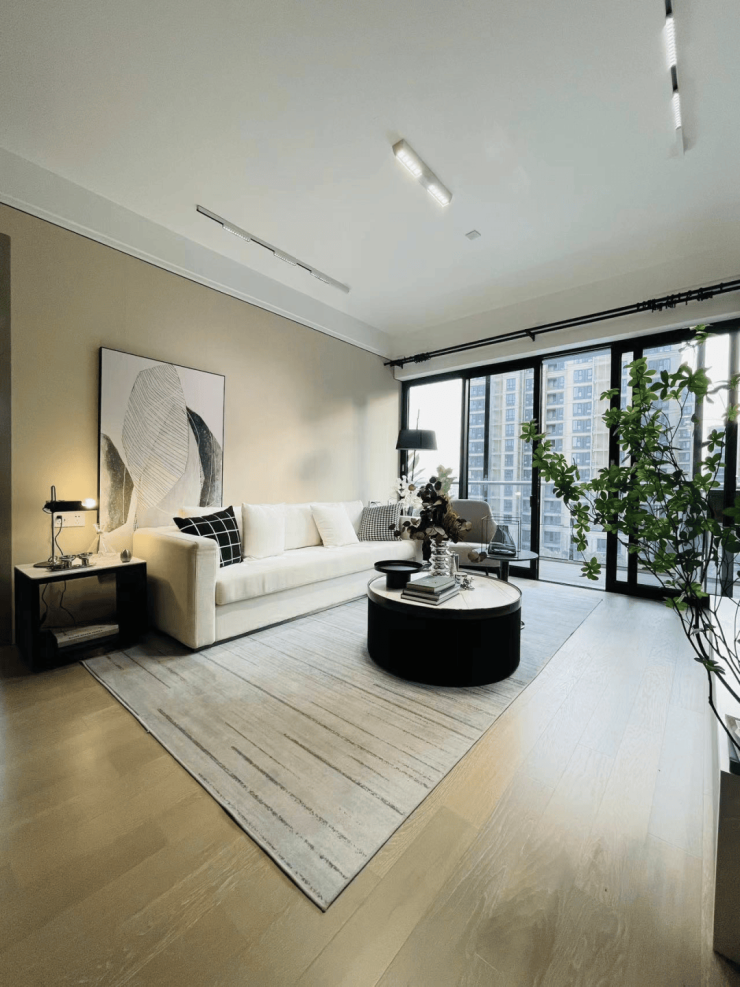 阳台运用高造价钢结构吊台承重,左右无墙体遮挡,好处是三面采光,一般阳台都是南向单侧采光,显然项目采光面更广,且三面配备的都是LOW-E超白玻,把采光和视野效果发挥到了极致。