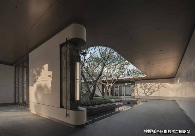 东方意境融于品质用材:石材迎宾、高品质植被、格栅意境