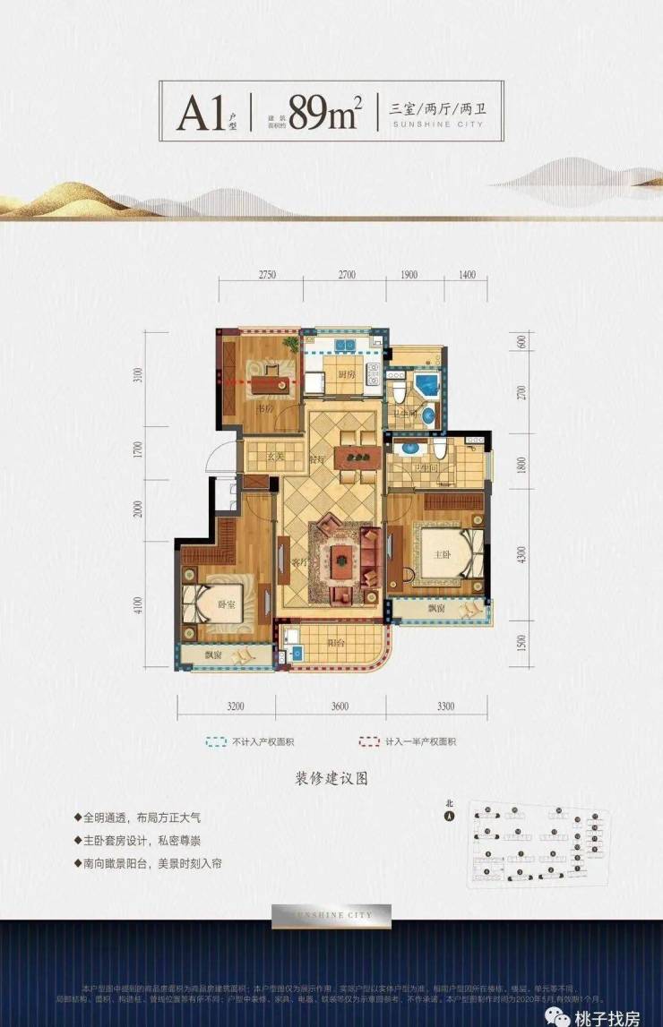 A1户型 :89方(3房2厅2卫)