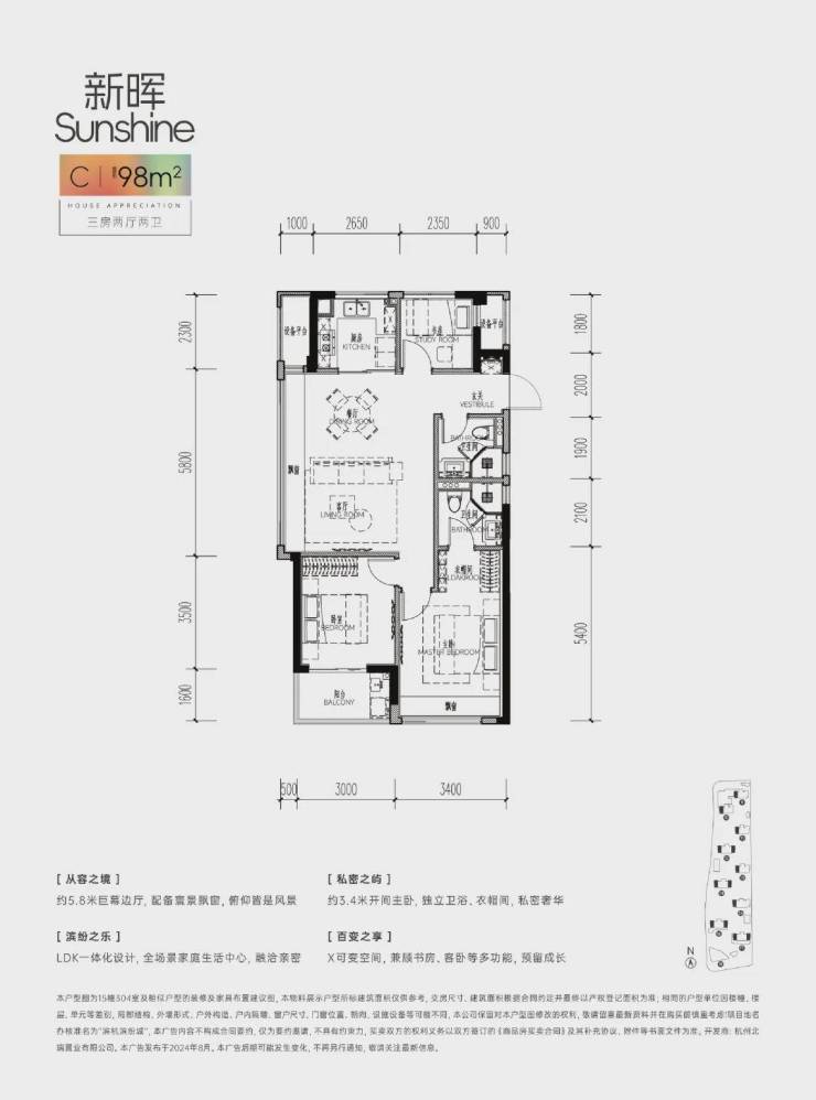 滨江造“1字头”豪宅专家滨江集团全力匠造的,总价100多万,对年轻人极度友好。占地面积约43万m²,总建筑面积约98万m²(分三期地块开发),小区配套地铁、商场、学校(幼儿园到初中)、公园、活动健身等,住宅70年,绿化率35%,滨江物业,首开面积89-115m²,限价19800元/m²(含装修)