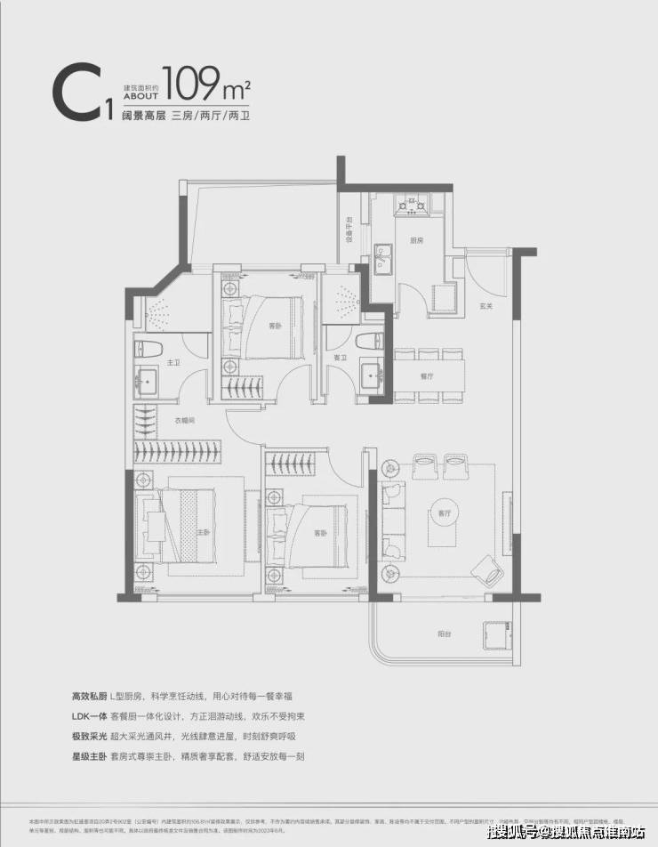建面约108㎡三房两厅两卫