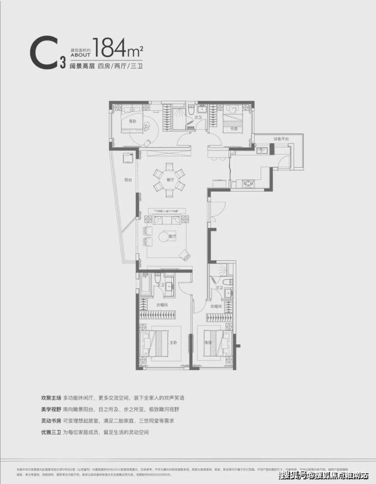 建面约184㎡四房两厅三卫