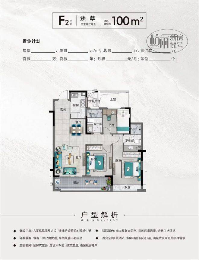 ◆奢阔三房:方正格局阔尺进深,演绎明媚通透的理想生活