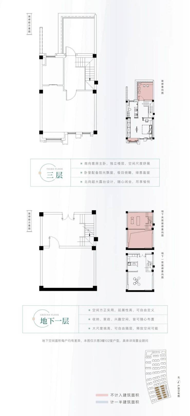其中改善类客户最为关注的,即是项目的叠墅产品,建面约110-176㎡的上下叠产品,上下双层的空间构成,功能空间舒阔充分,比如下叠大尺度的地下空间、上叠的阁楼、露台等等,是区域内不可多得的叠墅产品,同时240万起的总价,呈现了不俗的性价比,对于本打算置换平层的改善客户而言,北辰的叠墅产品提供了再次进阶的选择,堪称惊喜。