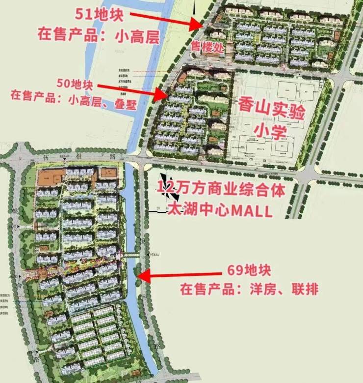 北辰观澜府联排樾墅新品坐落于69号地块,位于姚舍路与承祖路交汇处,距离太湖直线距离约900米。这次项目推出的联排樾墅新品位于地块东南侧,根据当时土地获取条件,樾墅产品南侧红线内有近万平米绿化,这也是该项目将会重点打造的园林区域。