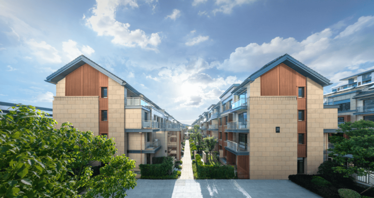 与园林景观对应,北辰观澜府联排樾墅采用了新中式建筑立面:大面积偏暖色干挂石材及铝板,兼具耐固性与美观度。而整个苏州只有极少数豪宅楼盘采用干挂石材作为小区外立面,足以看出北辰观澜府在产品打造上不惜成本的决心。