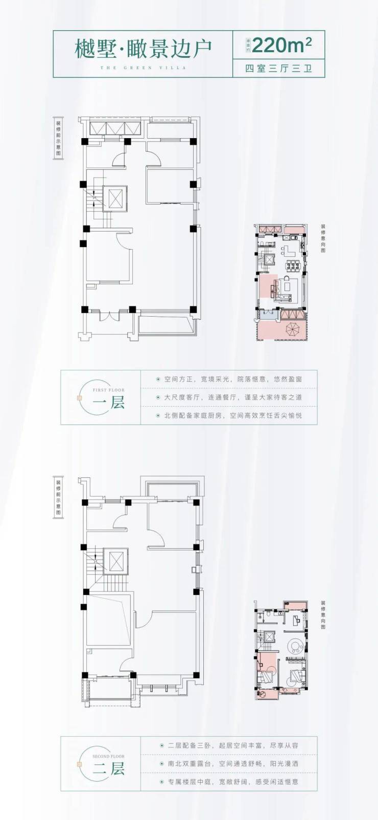 樾墅产品样板间已正式公开。整个项目仅24套,为地上三层,地下一层布局,三面采光,舒适度高。樾墅样板房面积约224㎡,采用的是4+1房2厅3卫设计,整体可拓展面积约85㎡,实际使用面积可达到约310㎡左右。