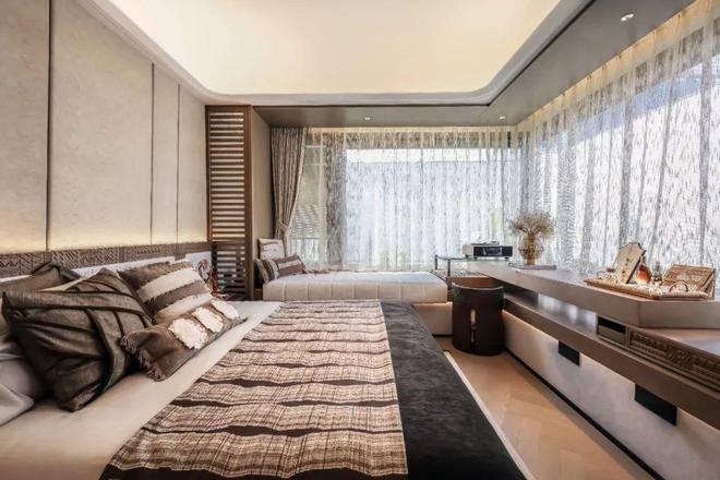 主卧豪华套房的设计+约270°的巨型飘窗,这个尺度感和实用性真的很强。
