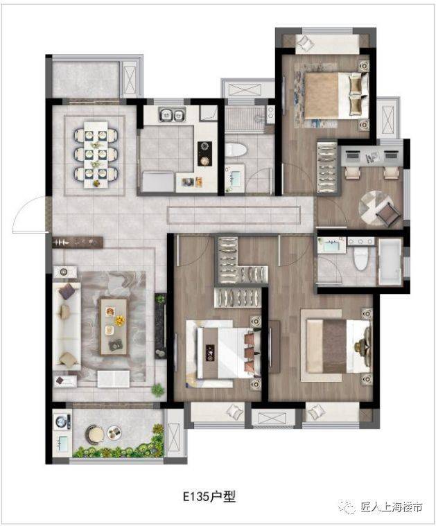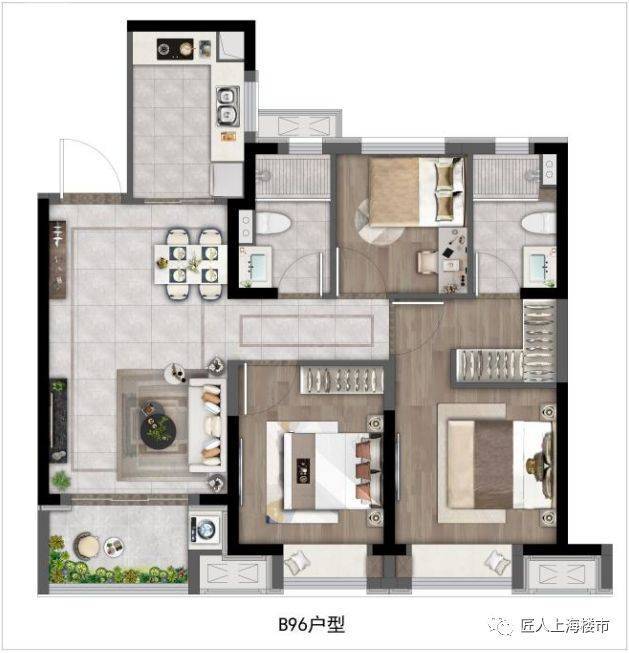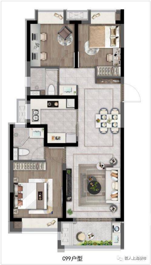 【梯数】两梯四户,东边套105平,西边套99平,中间套96平