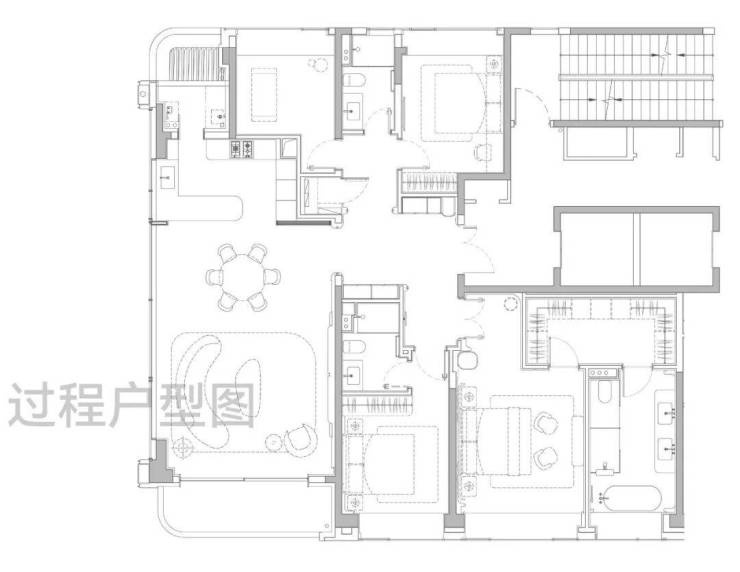 主卧大套房设计带超大主卫和衣帽间,面积约50㎡,尺度感与市面上近300㎡的顶豪拉平。