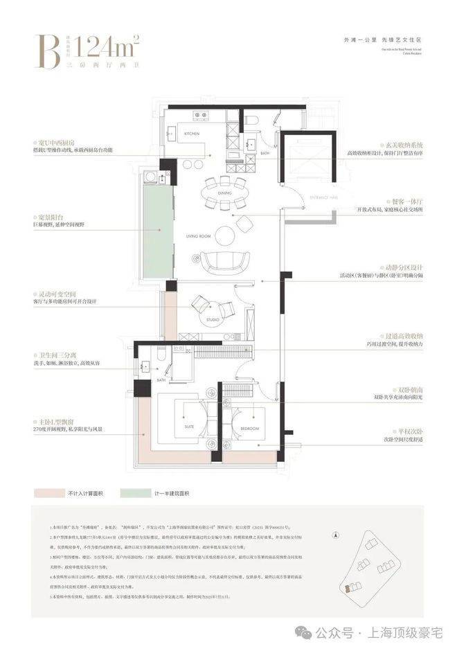 建面约124㎡灵阔舒居,入主外滩的优雅序曲