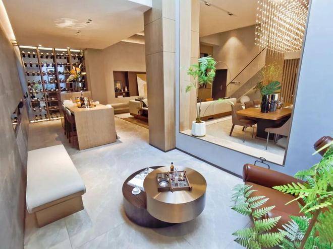 项目负二层规划有茶室、酒窖、会客厅,让整个空间更具多样性,可以容纳一家人不同的需求,喝茶品茗、观影娱乐,互不影响,却可以在同一个空间感受到彼此的相伴,大抵这就是生活的小确幸。