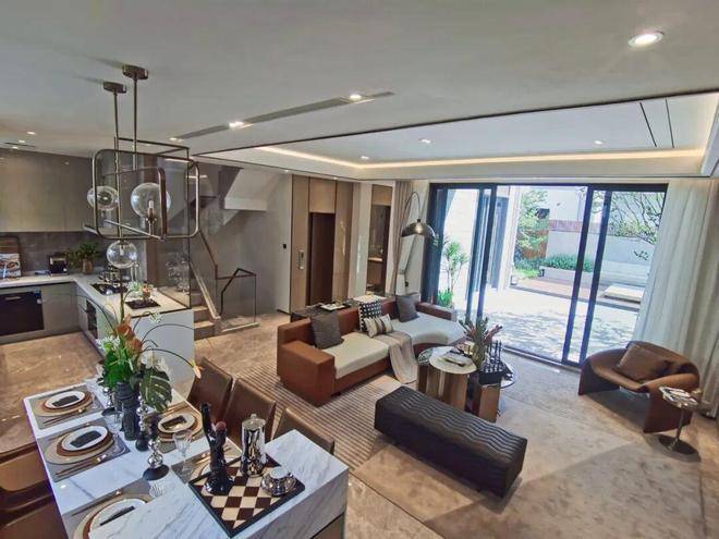 项目合院样板房分为地上三层、地下二层,地下两层和地上一层为综合活动区,兼顾客餐厅、休闲区、花园、茶室、酒窖……作为公共区域,满足大部分家人日常互动、休闲、聚会以及聚会社交需求,地上二三层为静区,书房、卧室、卫生间区域,聚焦在私密的情感互动。