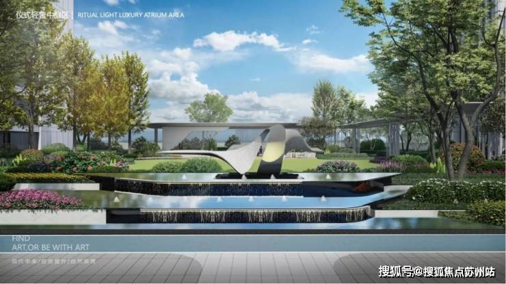 两处景观连廊+三大园林景观区,生活的列车从中庭户外会客空间「启程」,迎宾树阵+中庭水景,三重归家礼序伊始。