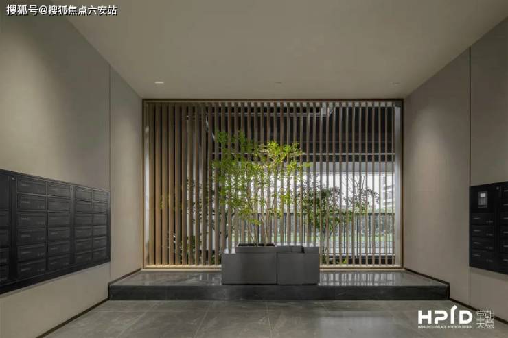 归家大堂的墙面采用了山形的自然肌理,不仅增加了空间的层次感,也让人感受到山间清新的气息。绿植的生机和墙面的山形肌理相互呼应,使空间显得更加完整和和谐,让归家大堂感觉有了凝聚力、吸引力和温度。