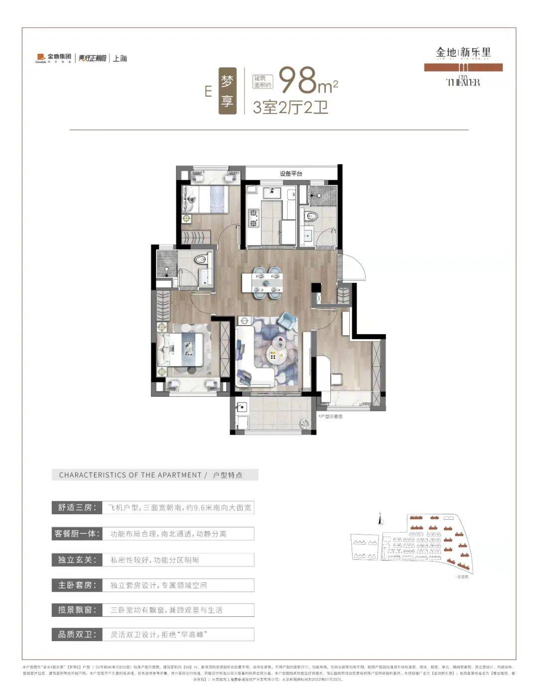 建面约98㎡的3房2厅2卫