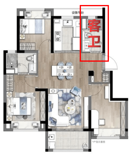 进门右手的客卫设计,对正在经历疫情的我们来讲,是一处实实在在的创新设计。