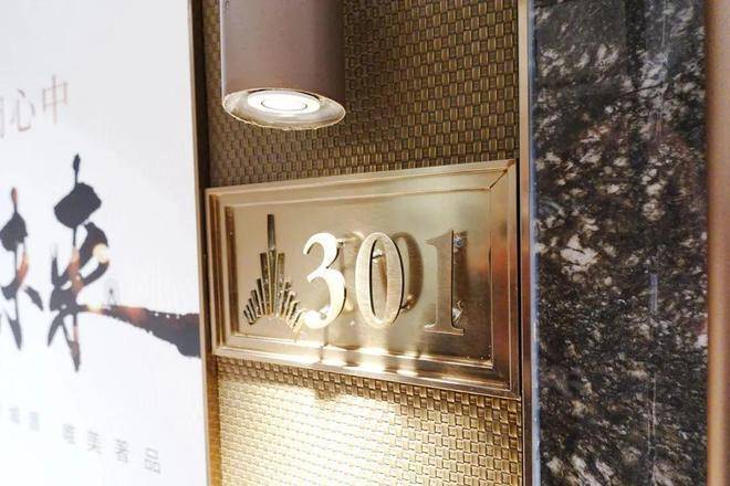安高这次打造的交付样板间,是从电梯厅开始的。107㎡是一梯两户,电梯间区域,主要以不锈钢条作为通高区域的墙面划分,吊顶带金属弧线。