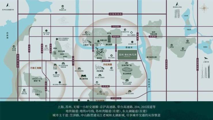 项目坐落于吴江老城芯、盛家厍东、运河畔,扎根2300多年历史沃土,周边环绕华严塔、泰安桥、垂虹桥等众多历史保护文物,随着垂虹桥历史风貌带修复,“垂虹秋月”“长桥卧波”等经典景观众现,住区与千年文脉无缝衔接,堪称“活着的江南文化博物馆”。依托新开河、花园河形成“双河浮岛”格局,伴江南运河水入眠,既续写江南雅致,又实现“左手繁华、右手诗意”的独特居住体验。