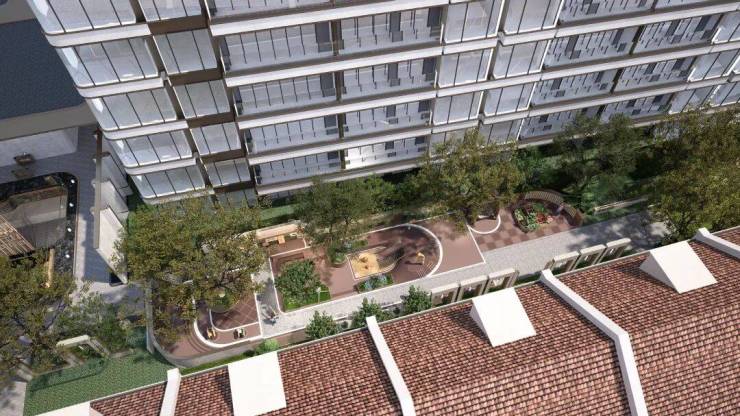 另外,下沉庭院东侧是织梦奇园,兼具趣味感和互动感的儿童乐园。海派生活轴的端点是邻里交互的艺术花园,是业主茶余饭后散步的好去处。
