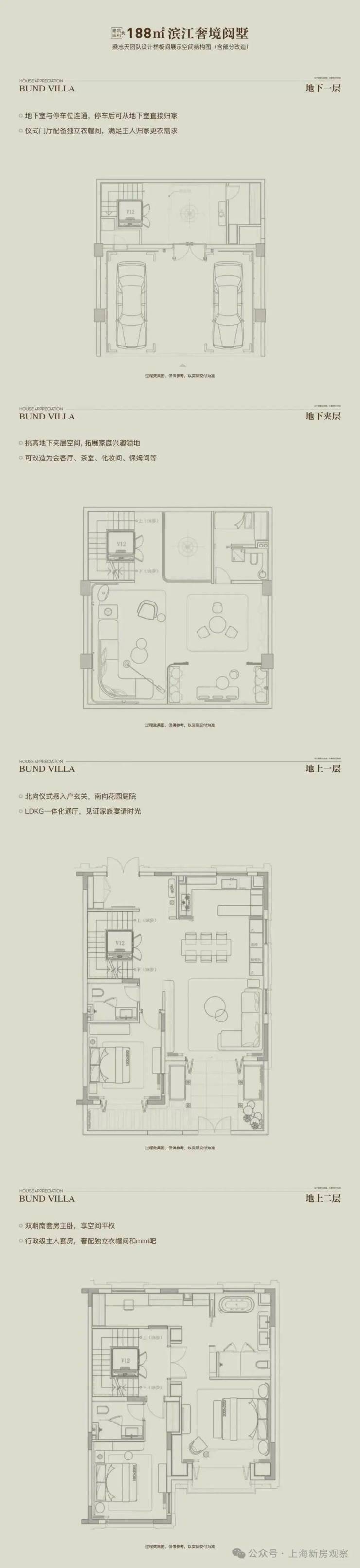 以“全两层+会所”的形态革新、花园露台地下室的全维空间、大面宽短进深的奢适格局,重构别墅生活场景。