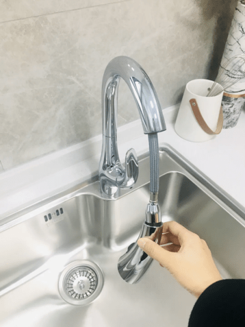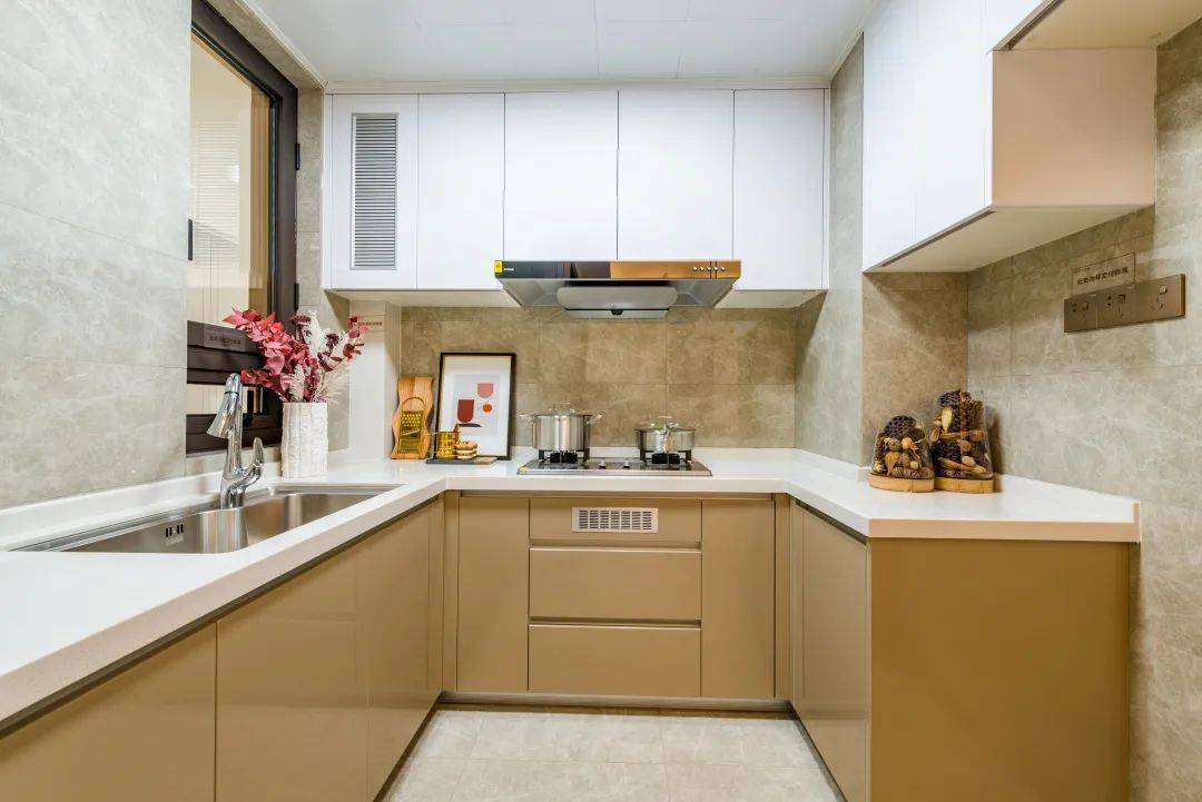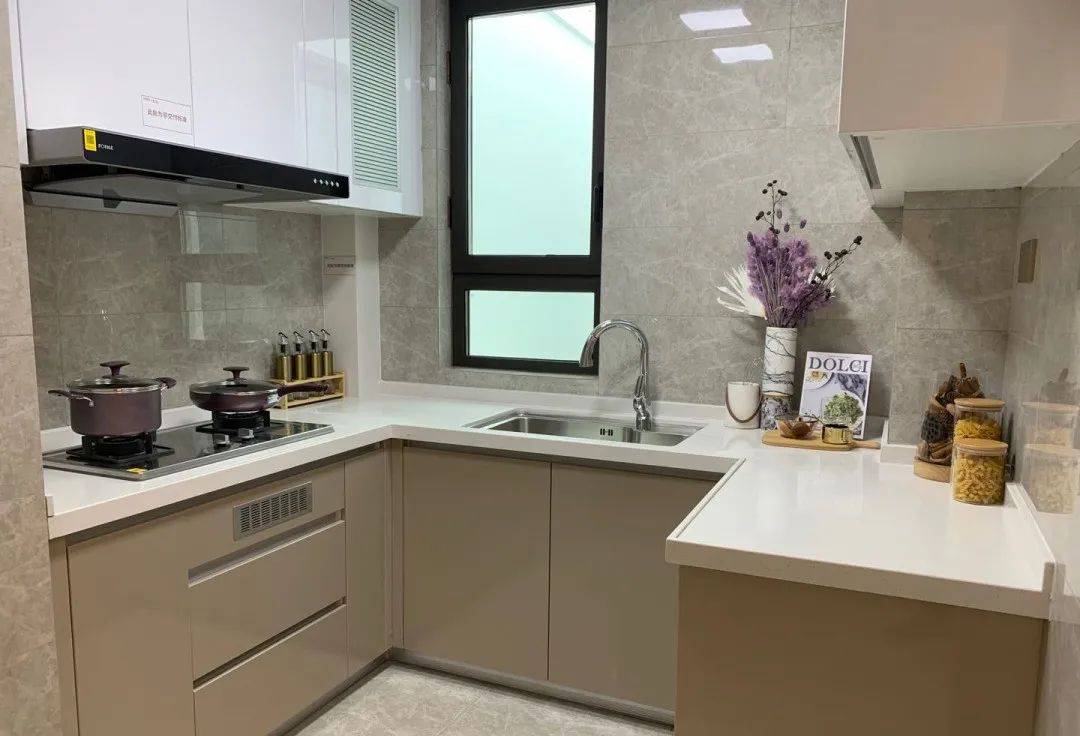 厨房配置一步到位,配备了有弗兰卡一体龙头水槽、可抽拉式龙头,方太品牌的油烟机与灶台。