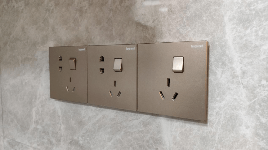 高品质装修交付,中央空调+地暖,罗格朗玫瑰金系列一体开关面板,巨力指纹、密码、机械钥匙、刷卡四合一门锁。
