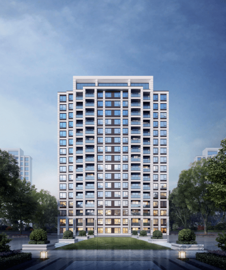 项目整体建筑风格以现代典雅为基础,小高层/洋房的单元门/叠墅基层配置了石材立面,其余大部分搭配高品质真石漆