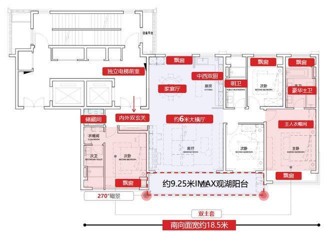 同样是类一梯一户设计,自带独立阔绰候厅,以及南向双套房分区布局,均配备独立卫浴,平等地满足两代人对私密性、尊崇感的需求。