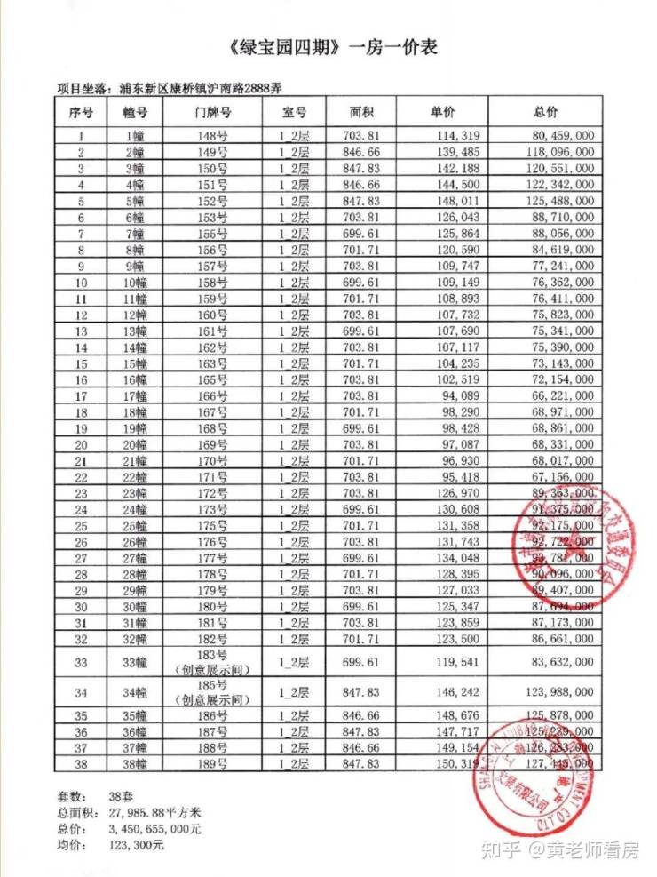 一房一价表:
