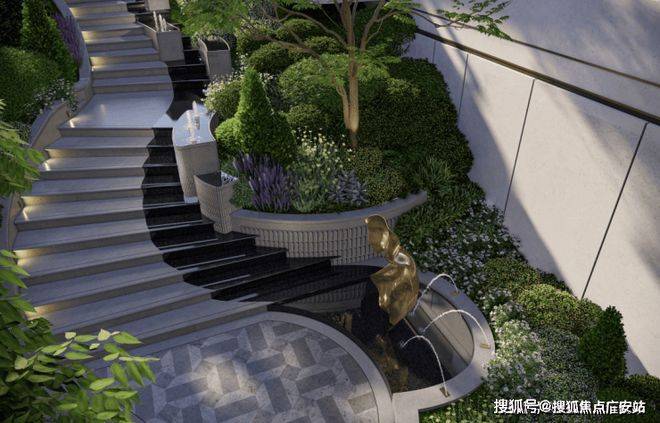 社区中心设置下沉庭院,作为业主邻里互动的“共享空间”,搭配景观绿植,实现“繁华到静谧”的自然过渡。