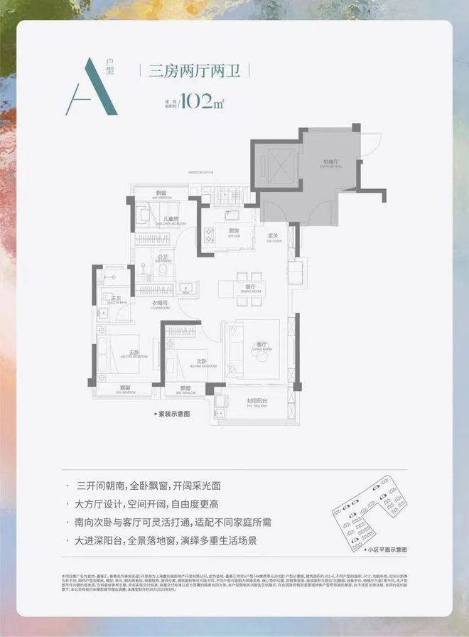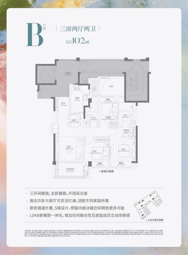 建面约102平 3房2厅2卫(边户)
