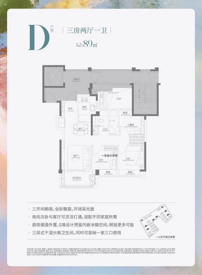 建面约89平 3房2厅1卫(中间户)