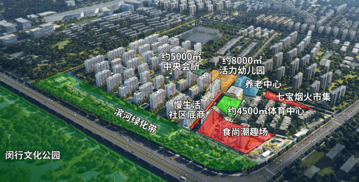 商业配套:除一期部分配套底商之外,位于项目北面的闵行万象城,直线距离仅600米。以及10号线紫藤路站,1公里就是爱琴海购物公园。通过轨交9号线坐1站就是七宝古镇,周边不管是七宝万科、宝龙城,还是七宝老街、都是闵行数一数二的商业、商业体。