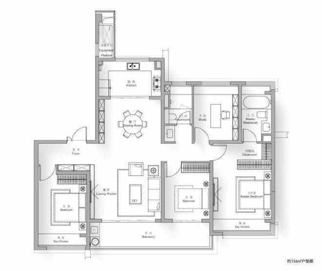 约156㎡四房两厅两卫,打造了四开间朝南设计,南北通透