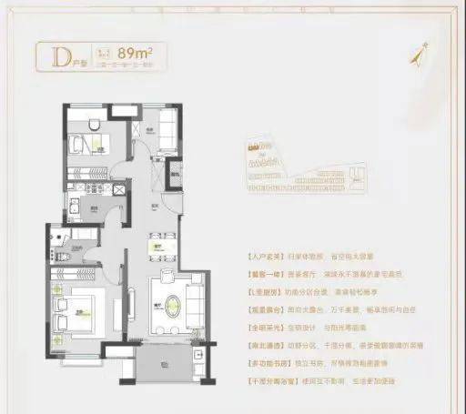 洋房:55㎡和56㎡1房1厅1卫、78㎡2房1厅1卫、89㎡3房2厅1卫
