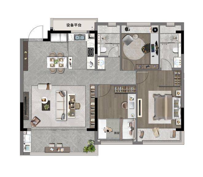 项目选配海尔中央空调、 汉纳纳米地暖、爱迪士新风系统;采用超规格910*127*1200mm书香门第实木复合地板;汇集科勒卫浴、恩仕、立邦等国内国际一线品牌,整体呈现当代高端度假酒店式色彩风格与高颜值色系。
