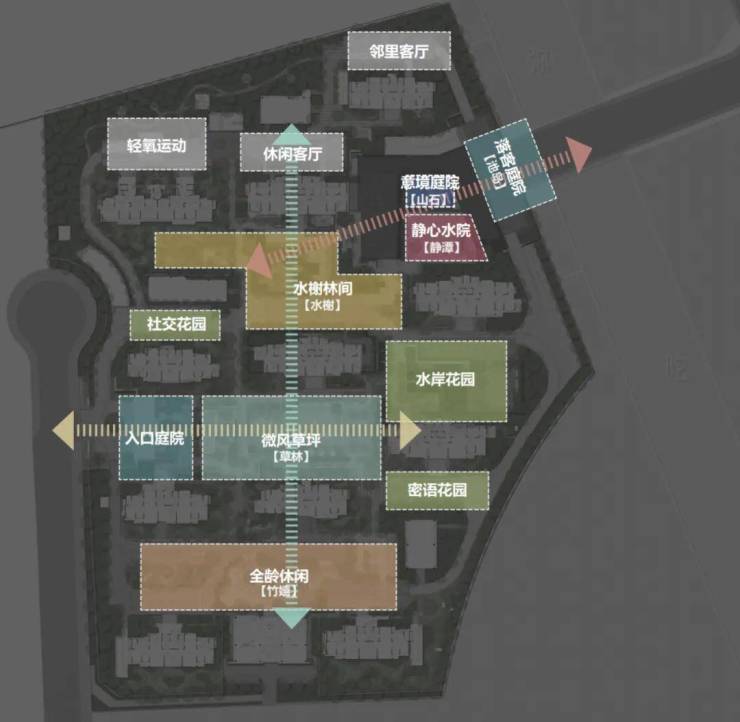 项目对标沧浪亭的整体设计,引入六大苏园核心场景,打造“三轴六境六园七会所”,通过“池岛-静潭-山石-水榭-草林-竹嬉”六种水岸度假生活美学,重塑当代游园体验,并且通过下沉会所、以及架空层设计,引入水景、绿植与灰空间,营造一种仿若置身一座“大园子”的体感,在建筑排布的设计主动减容,最终达成了19.8%的容积率,也就是在五分之一土地上造房,实现“低密”基因的强化,以及人均均好的景观实现。