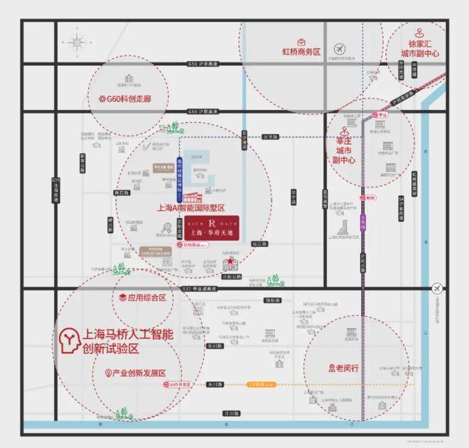 交通方面:项目周边拥有纵横立体的交通网路,经嘉闵高架可直达虹桥商务区及虹桥枢纽;沪昆高速和虹梅南路高架与中环、沪闵高架路相连到达古北、长宁徐家汇;申嘉湖高速可快速通往浦东机场及长三角城市群。