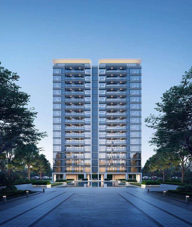 用材采用豪宅标配的铝板+石材+三玻两腔玻璃,仅少量涂料,高级感浑然天成。