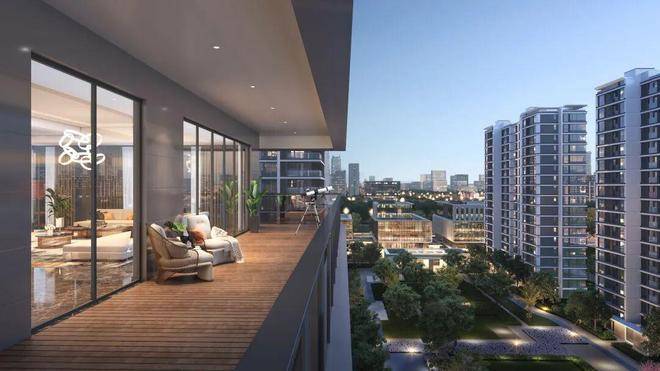 ta几乎囊括了豪宅所需的所有居住功能:南向三个套房卧室、保姆房、超60㎡的270°视野客餐厅、约17米长的C型大阳台、超大厨房空间。