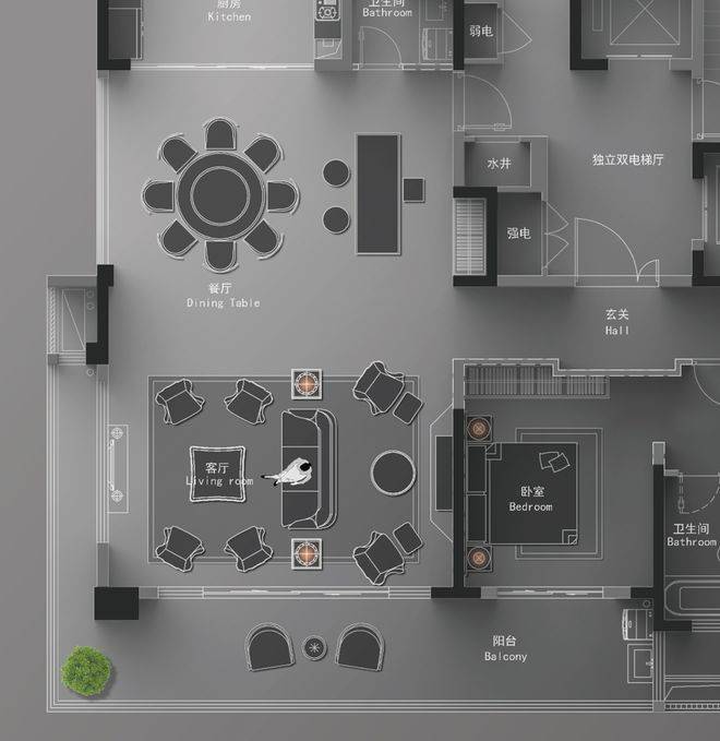 一梯一户+独立电梯厅的设计,兼顾尊贵和性价比……