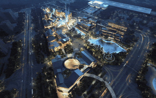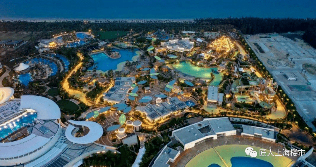 整个项目可以分为南北两个板块:北面是居住配套板块,包含精修成品住宅、邻里中心、学校、智慧公寓等;南部板块即为一站式旅游度假目的地。这个板块地上地下加起来总建面超过100万平米,总投资将近150亿。