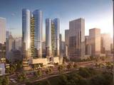 项目总建筑面积53.3万平方米,主体由对称的63层东西双塔组成,建筑高度302.6m,是集企业总部、综合商务、星级酒店、精品商场等功能为一身的综合体