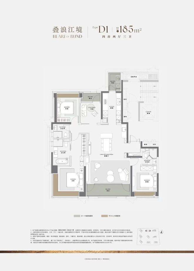 ✅ 越级产品唯一性:“小面积,大享受”185㎡做出200㎡+的空间感