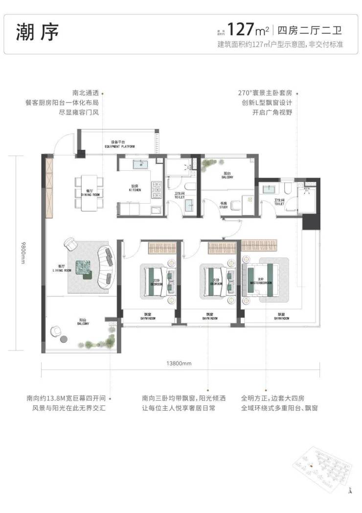 再来看项目的四房户型,有建面约127方、约130方2款。