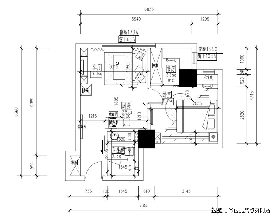 采光:户型方正,视野开阔,空间布局合理,麻雀虽小五脏俱全。