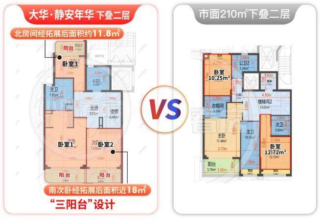 大华静安年华官方售楼处电话:400-8818-994【预约☎】据悉,三个阳台合计赠送约7.8㎡,空间体感提升十分明显。北房间与南次卧经阳台拓展后,舒适度大幅提升,从数据尺度来看,甚至优于市面上不少210㎡叠墅卧室空间,实现全家人居住平权。
